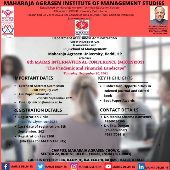 8th MAIMS International Conference (MICON 2021) – Online 30th September 2021 BBA - Notices, Latest NoticesBy adminSeptember 30, 2021micon notice