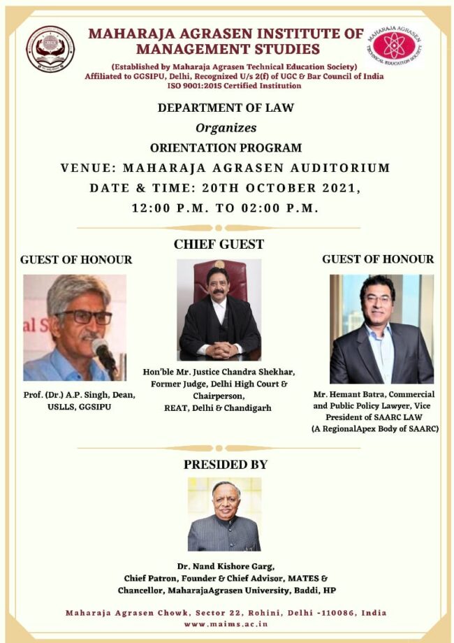 Orientation Program for the First Year Students (Batch 2021-26) Department of Law, Latest NoticesBy adminOctober 14, 2021Notice Final