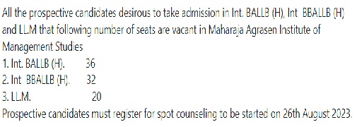 Spot Round of centralized Online Counselling for LLB-MAIMS admission Notice, Latest NoticesBy adminAugust 25, 2023Vacant