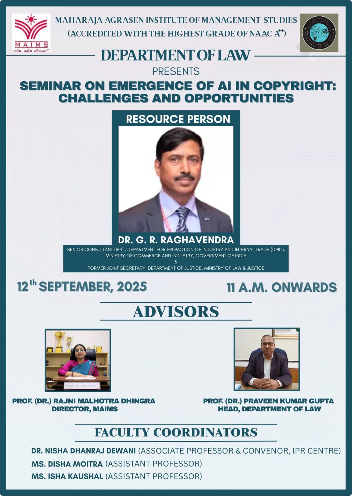 Seminar on Emergence of AI in Copyright Challenges and Opportunities dated 12 September 2025