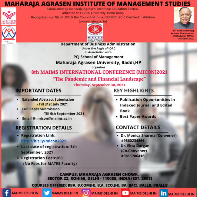 8th MAIMS International Conference (MICON 2021) – Online 30th September 2021 BBA - Notices, Latest NoticesBy adminSeptember 30, 2021micon notice