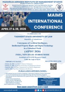 27 - 28 April 2026 MAIMS International Conference on L TECHNOLOGY IN A GLOBALISED WORLD CONVERGENCE OF ARTIFICIAL INTELLIGENCE, INTELLECTUAL PROPERTY RIGHTS & DIGITAL TECHNOLOGY IN A GLOBALISED WORLD